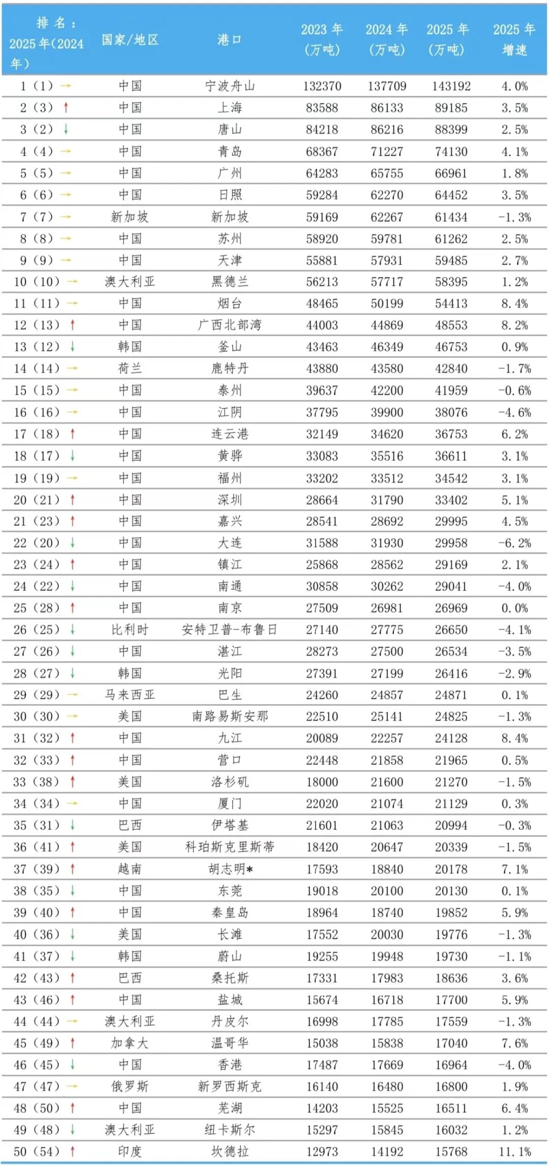 【专稿】全球前五十货物港口排名——上海国际航运研究中心 港口发展研究所 卢向清 于洪伟 谢文卿 赵楠