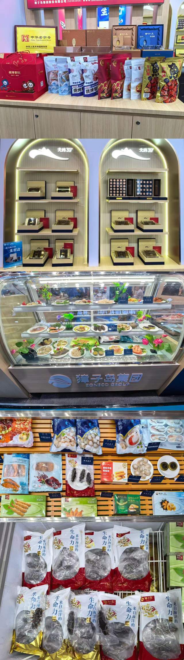 本届展会,獐子岛集团旗下“獐子岛”主品牌以及“北纬39°”、“城市渔夫”两大副品牌联袂亮相。集中展示源自北纬39°獐子岛原产地的源刺参、鲍鱼、扇贝,以及来自大洋深海的三文鱼、鳕鱼、鱿鱼、鲐鲅、虾等养生食品、预制食品、冻鲜食品和休闲食品。充分彰显了獐子岛集团在海洋食品领域的研发实力、深厚的品牌价值以及卓越的产品品质。