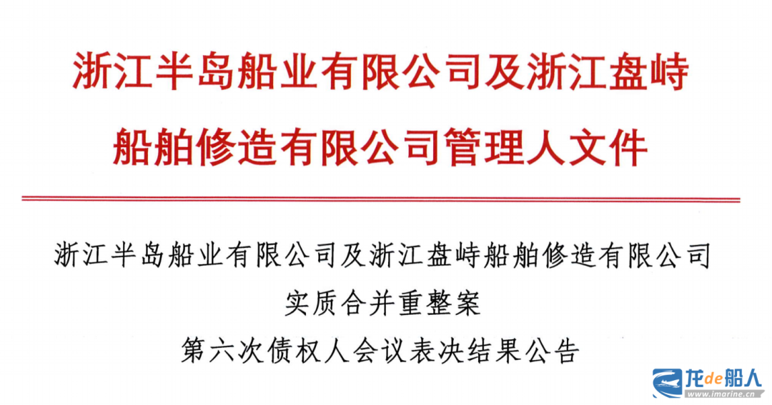 近日,半岛船业管理人发布《浙江半岛船业有限公司及浙江盘峙船舶修造有限公司实质合并重整案第六次债权人会议表决结果公告》。