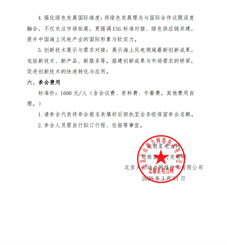 为深入贯彻落实“十五五”规划目标,凝聚行业共识,共商海上风电高质量建设路径,北极星电力网、北极星风力发电网拟于2026年5月26日在江苏南京召开第六届海上风电创新发展大会暨“十五五”海上风电基地建设研讨会,将邀请国家及地方政府主管部门、智库专家、规划与建设单位、产业链龙头企业、科研院校及金融机构代表,共绘海上风电高质量发展蓝图,解锁深远海、基地化、供应链、AI 技术等系列机遇和挑战,为产业跨越式发展注入强劲动能。