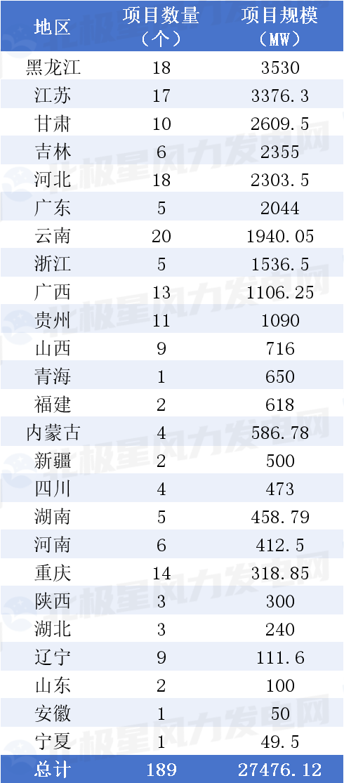 据北极星风力发电网不完全统计,2026年一季度我国风电项目核准/备案工作有序推进,共25个省区市核准/备案风电项目189个,总规模27476.12MW。其中,海上风电项目17个,总规模6615.8MW。