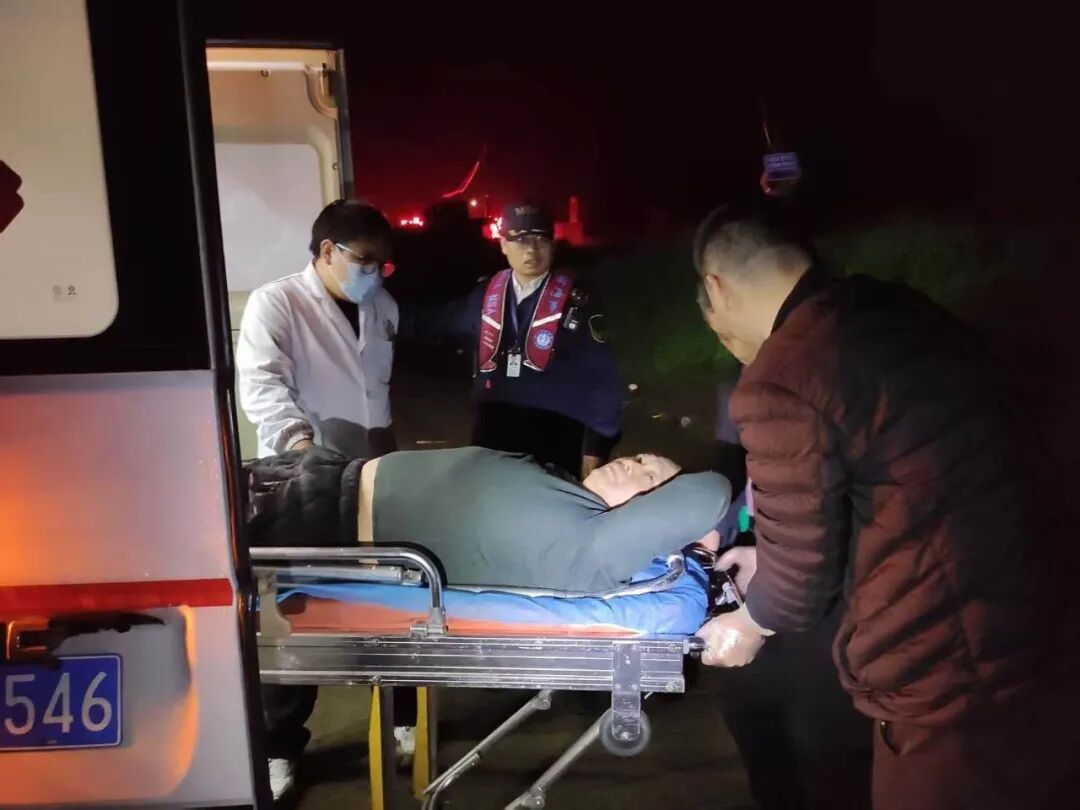 “救护车已快到达鄢铺水域,马上出发,目标鄢铺渡口!”随着一声指令,海巡艇在黑夜中全速驶向鄢铺码头。最终,海巡12258艇成功靠泊,海事执法人员与现场医护人员合力将生病船员用担架转送至救护车,紧急送往医院救治。