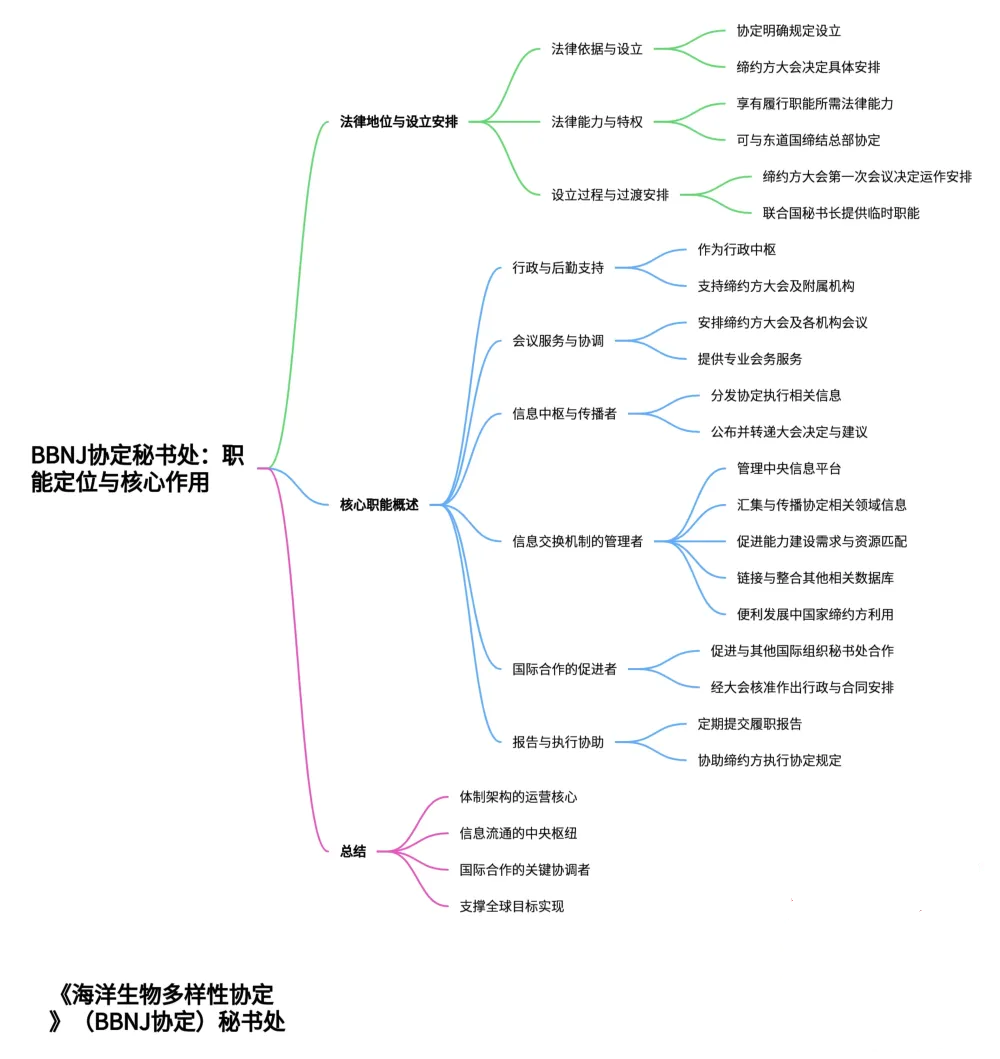 BBNJ协定是继《联合国海洋法公约》后最重要的海洋法律框架,涵盖海洋保护区设立、环境影响评估、遗传资源惠益分享等关键机制。在国际法的宏大框架下,一项国际公约的签署,往往只是漫漫长征的第一步。要让纸面上的法律条文转化为全球海域的实际行动,就必须有一个常设的“执行大脑”,这便是“秘书处”了。秘书处作为“心脏与大脑”,掌握议程设置、协调执行与资源分配权,也可以理解为某种意义上是一个全球公海治理的“枢纽”。