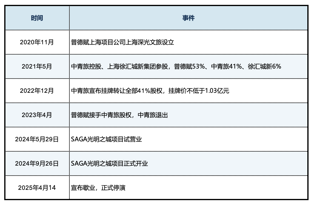 中青旅控股退出后,项目的股权结构从三方变成了几乎是普德赋一方主导,接手中青旅股权增加了普德赋的资金压力,更大的影响是失去了最重要的“本地军师”,而徐汇区城新集团并无文旅项目运作经验,后续口碑和运营上出现的种种问题与此不无关系。