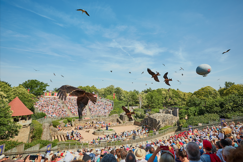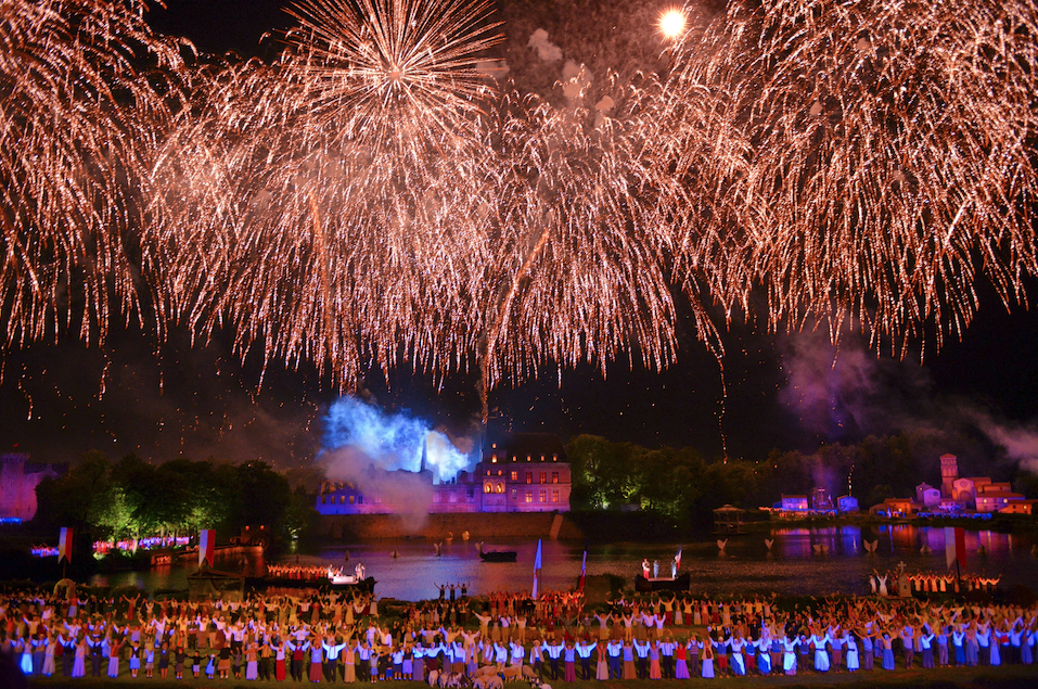 1978年,从一片废墟上建设起来的法国狂人国主题公园对外开放,其创始人Philippe de Villiers推出了首场大型夜间演出《La Cinéscénie》,该演出是以法国家族历史为线索,从中世纪跨越至第二次世界大战,成为整个主题公园的核心起点和灵魂作品。也奠定了以后近50年里,该项目在法国人民心中无可替代的地位。