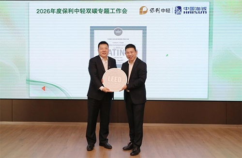 会上,“海诚·Cclaw碳克工场”正式揭牌启动,将着力构建项目实践与系统能力一体化解决方案,助力产业绿色升级。美国绿色建筑委员会向中国海诚品牌馆授予LEED铂金认证,充分肯定中国海诚绿色建筑与低碳运营成果,彰显保利中轻绿色发展成效。中国城科会绿建委主任王有为受邀解读“双碳”政策、研判行业走向,为保利中轻提供“双碳”业务指引。