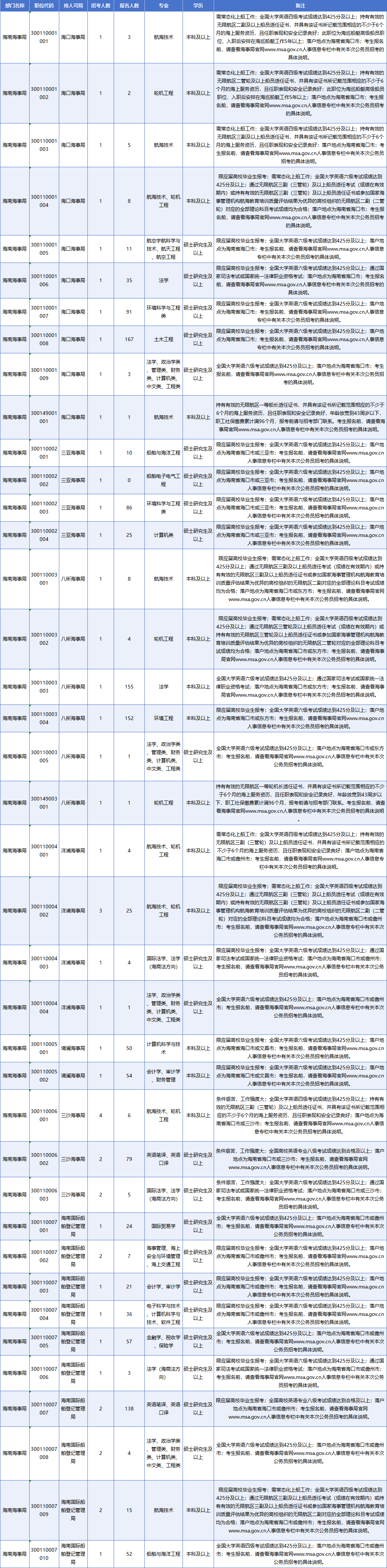 (海南局职位表及报名人数)