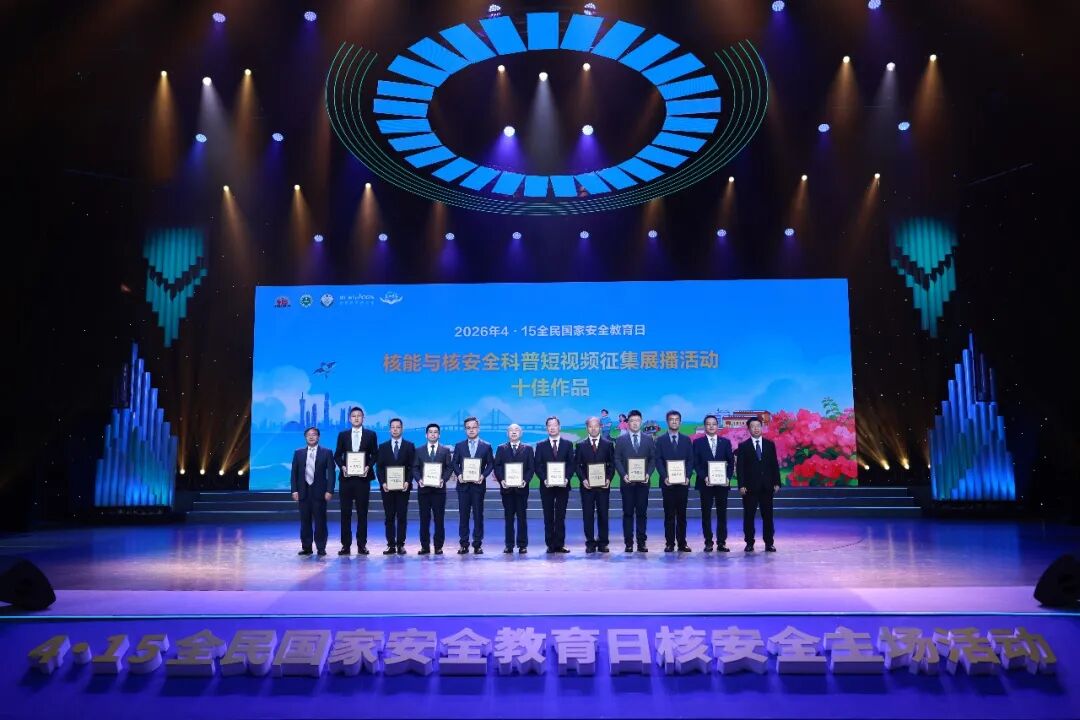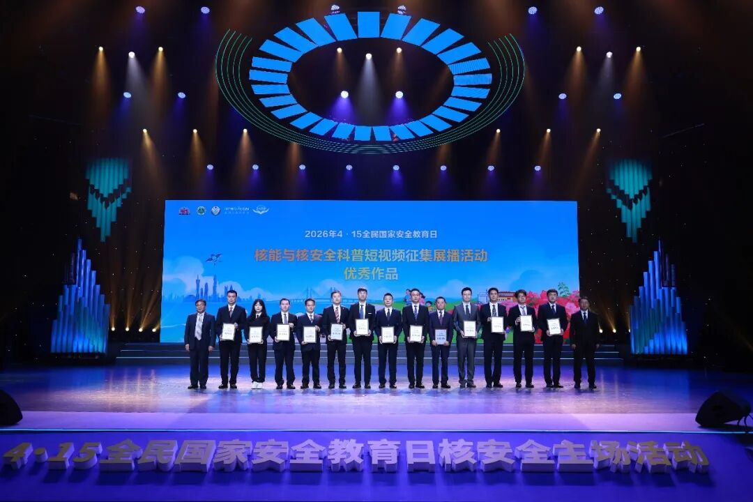 为营造核安全宣传浓厚氛围,活动前夕,生态环境部核与辐射安全中心联合中广核举办了2026年“4·15”核能与核安全科普短视频征集展播活动,吸引85家单位提交175部作品,活动现场,生态环境部核与辐射安全中心副主任封有财、中国广核电力股份有限公司副总裁周建平为十佳作品和优秀作品获奖单位颁奖。