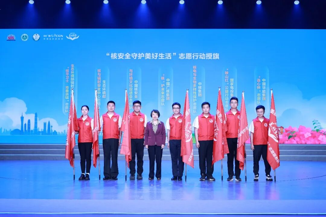 在“核安全守护美好生活”志愿行动授旗仪式环节,生态环境部辐射源安全监管司司长刘璐为志愿者代表授旗,来自生态环境部核与辐射安全中心、生态环境部辐射环境监测技术中心、中国核安全与环境文化促进会及中广核、中核、华能、国电投等单位的志愿者代表庄严宣誓。