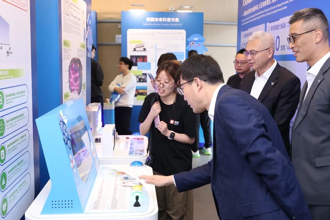 现场嘉宾与学生还参观了中华电力低碳能源教育中心和同期举办的中广核“核光同行”“核铸未来”科普展览。该展览设于香港城市大学刘鸣炜学术楼3楼,展期为4月8日至4月30日,为期三周,面向香港学生及公众免费开放。展览以沉浸式、互动式、体验式为特色,内容丰富、形式新颖,成为活动现场的一大亮点。