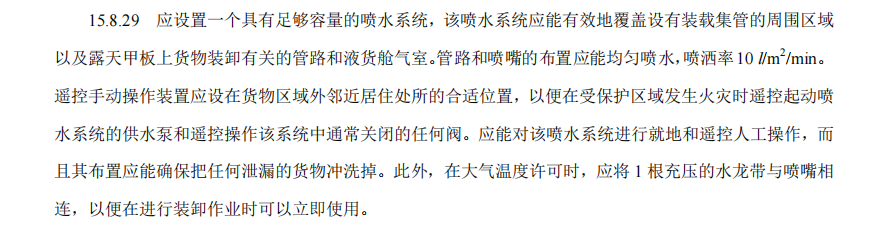 规范使用喷淋系统,明确其为高温、燃爆、泄漏防控关键,高温天气依规启用;清理甲板污染物,喷淋初期废水排入污液仓,防范水体污染。