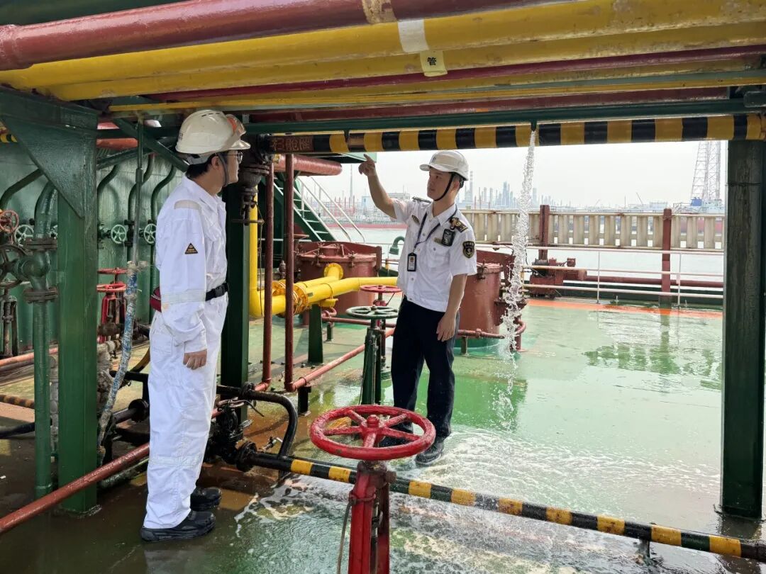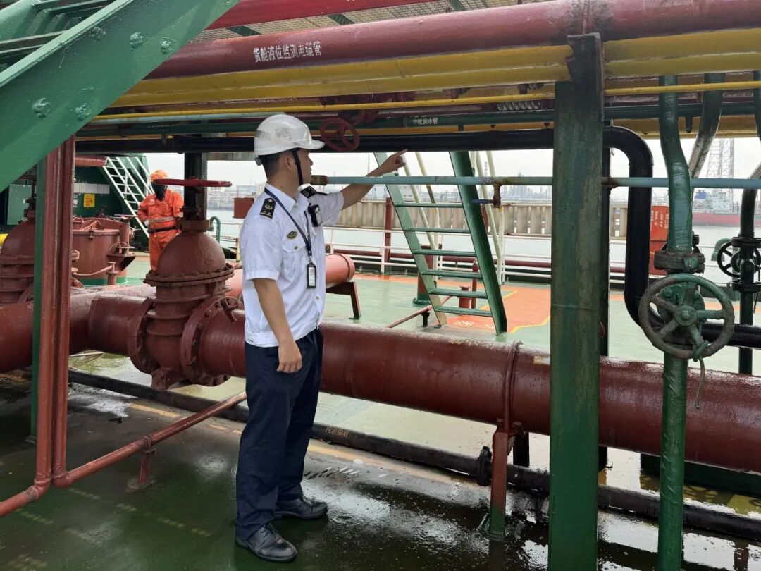 液货船甲板喷淋管检查 洋浦海事局 吴德成 摄