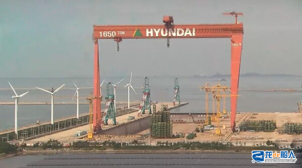 资料显示,群山船厂是HD现代重工旗下最年轻的船厂,成立于全球金融危机前船市最繁荣期,总投资1.2万亿韩元,于2008年初开工,2009年底正式投产,船厂占地180万平方米,拥有当时全世界最大的100万吨级船坞(长700米)和1650吨级龙门吊,可同步建造4艘大型船舶。群山船厂是当时全球最大的单体船厂之一。