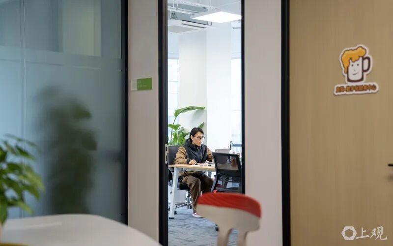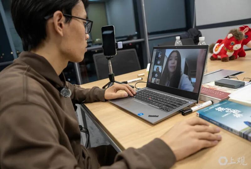 项目筹备期间,周沛统在零界魔方办公室内与队员们视频沟通。
