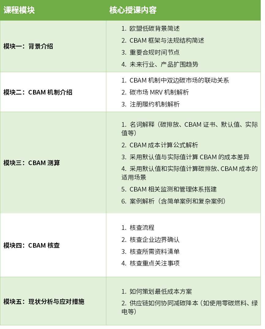 参培企业福利:以企业名义报名的学员,后续该企业与CTI华测认证合作包括但不限于CBAM审核、碳业务、体系认证等服务时,每位报名学员可获得5000元服务费用抵扣大礼包!详情请咨询对接客户经理。