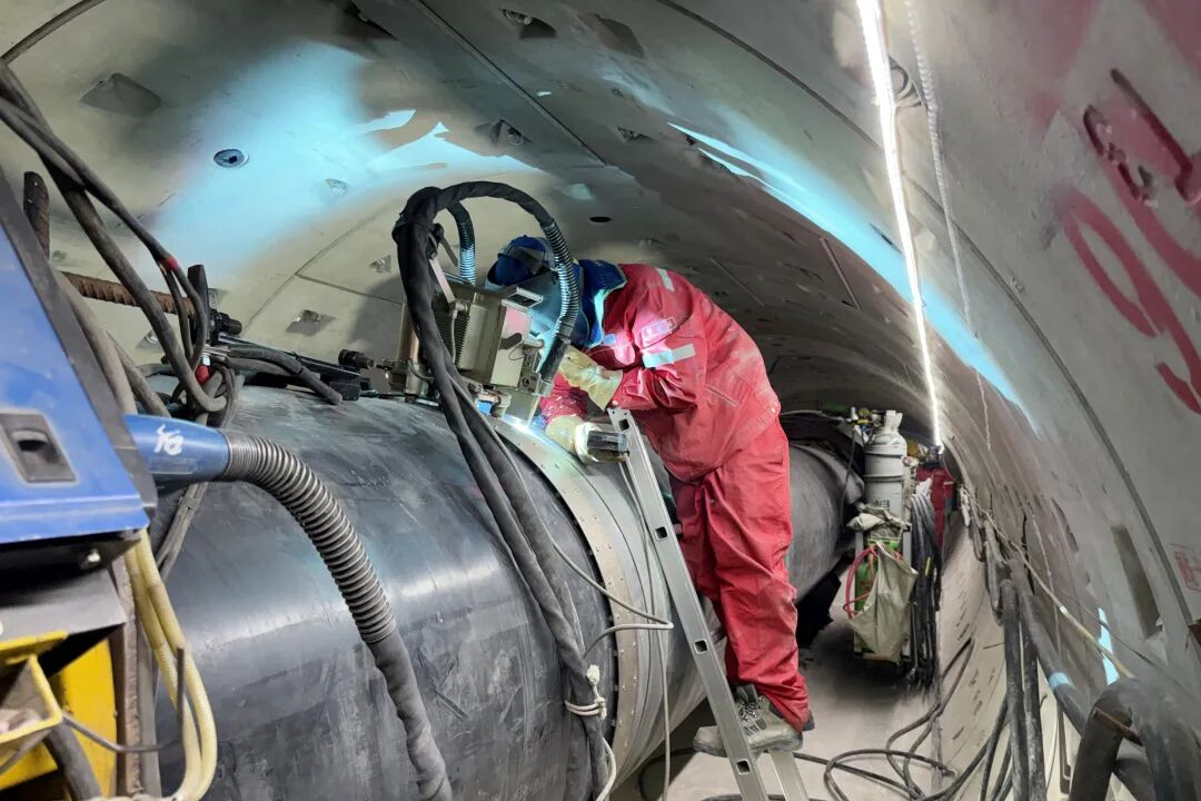 团队成员再次翻阅国内外同类工程成功案例,从经典盾构隧道的施工经验中找到突破口,大胆提出“隧道内原位全自动焊接+冷弯管拼接”的全新方案。为了实现曲线的平滑衔接,他们用多组冷弯管精准拼接,对每根弯管的精度要求苛刻到毫米级;为了确保焊接万无一失,主动建议施工单位搭建三维模型,让焊工提前在虚拟隧道里演练焊枪轨迹,熟悉操作流程、校准焊接角度,实现“一次焊接、一次合格”预演目标。