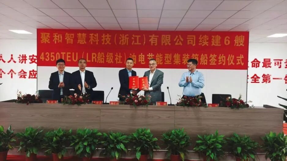 一笔新增6艘、累计8艘的集装箱船订单,让此前在业内并不高调的聚和智慧科技(听起来似乎并不像一家航运公司的名字),突然站到了国际集运赛道的聚光灯下。据信德海事网最新了解,4月11日,继2025年签约开建2艘4350TEU节能型集装箱船后,聚和智慧科技(浙江)有限公司又与台州建兴重工正式签署新增6艘优化型集装箱船建造合同。至此,该公司在这一船型上的规划数量已增至8艘。按披露信息,新船将自2027年初起按季度陆续交付,并于2028年底前完成全部交船。签约现场,LR船级社、中船赛思亿以及FLEET船舶管理公司等合作方共同出席见证。如果这笔订单最终按计划全部落地,那么它的意义显然不只是“多订了6条船”。更重要的是,这标志着聚和智慧科技不再只是一个带有“智慧航运”“绿色技术”标签的新玩家,而是在用成规模的新造船投资,正式把自己推向国际集装箱运输市场。对一家过去更少出现在主流集运新船版图中的中国民营船东而言,这一步既是业务转型的分水岭,也是资本、技术和运营能力集中亮相的一次信号释放。从2艘到8艘