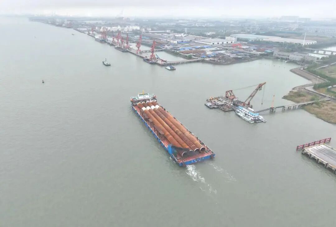 据南通振华重型装备制造有限公司消息,4月13日,由上海振华重工集团参建的广东阳江三山岛500千伏海上风电柔直输电工程海上换流站项目钢管桩顺利装船发运。本次发运的4根钢管桩单根重900吨,直径5米、长120米。