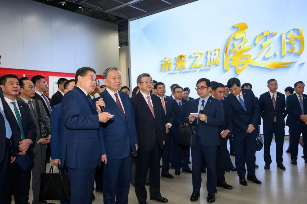4月14日上午,越共中央总书记、国家主席苏林开始对中国进行为期四天的国事访问。抵达北京后,他随即乘高铁前往雄安新区参访。 新华社记者 金良快 摄“复兴号”车厢里温馨舒适。苏林总书记、国家主席微笑着谈起此次访华缘起:“习近平总书记、国家主席去年访问越南的时候,就邀请我访问中国。越南和中国的同志,咱们越走越亲。”在当天在中国媒体上发表的署名文章中,苏林表示,越南正进入落实越共十四大决议的新阶段,朝着“两个一百年”奋斗目标迈进。“发展科学技术、改革创新和数字化转型是首要突破方向”。“越南始终把中国的稳定、高质量发展视为促进地区和平、合作与发展的重要因素,视为包括越南在内的周边国家的重要发展机遇。”文章指出。千年大计、国家大事。规划建设雄安新区,是习近平总书记亲自谋划、亲自部署、亲自推动的历史性工程。经过9年规划建设,雄安新区正努力建设新时代创新高地和推动高质量发展样板。苏林此次率领由经贸、科技、文化、地方等多个领域负责人组成的高规格代表团访华,特意把雄安新区作为参访首站。经过约45分钟的车程,苏林一行走进了这座“未来之城”。4月14日上午,越共中央总书记、国家主席苏林开始对中国进行为期四天的国事访问。抵达北京后,他随即乘高铁前往雄安新区参访。这是苏林在雄安新区启动区综合服务中心参访。 新华社记者 金良快 摄启动区综合服务中心内,苏林在巨大的沙盘旁认真听取雄安新区总体规划、政策体系及建设情况介绍。在中国中化大厦和金融大厦的微缩景观前,在雄安史家胡同小学和北京四中雄安校区的校舍模型前……苏林不时驻足,饶有兴致地观看,听取讲解,并不时与随行人员交流。服务中心内洋溢着浓浓暖意。屋外,碧水盈盈环抱新城,“千年秀林”新绿初浓,一派生机勃勃的景象。习近平总书记强调,“绿水青山就是金山银山,雄安新区就是要靠这样的生态环境来体现价值、增加吸引力”。听了相关负责人对雄安生态建设理念的介绍,苏林频频颔首,表示赞同。4月14日上午,越共中央总书记、国家主席苏林开始对中国进行为期四天的国事访问。抵达北京后,他随即乘高铁前往雄安新区参访。这是苏林在雄安新区中央绿谷参访。 新华社记者 金良快 摄移步中央绿谷明珠湖畔,几声清脆的啼鸣吸引了苏林的注意。凭栏远望,水城共融的开阔景象让他感慨:“这里是游船的好地方啊。”“没错,我们很快就会开通游船服务。”交流对话间,现场响起一阵欢笑声。“越南和中国都进入了各自新的发展机遇期。”苏林说,“我们两党两国要加强合作,加强战略对接,共同谋求发展。”