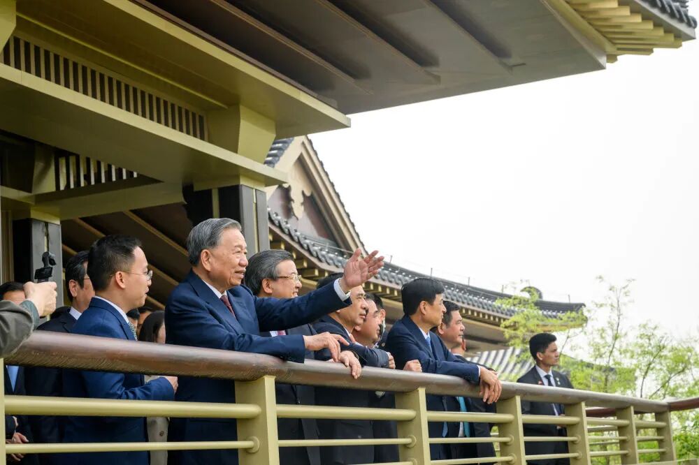 4月14日上午,应中共中央总书记、国家主席习近平邀请对中国进行国事访问的越共中央总书记、国家主席苏林,抵达北京后首个行程,是踏上开往雄安新区的高铁列车。