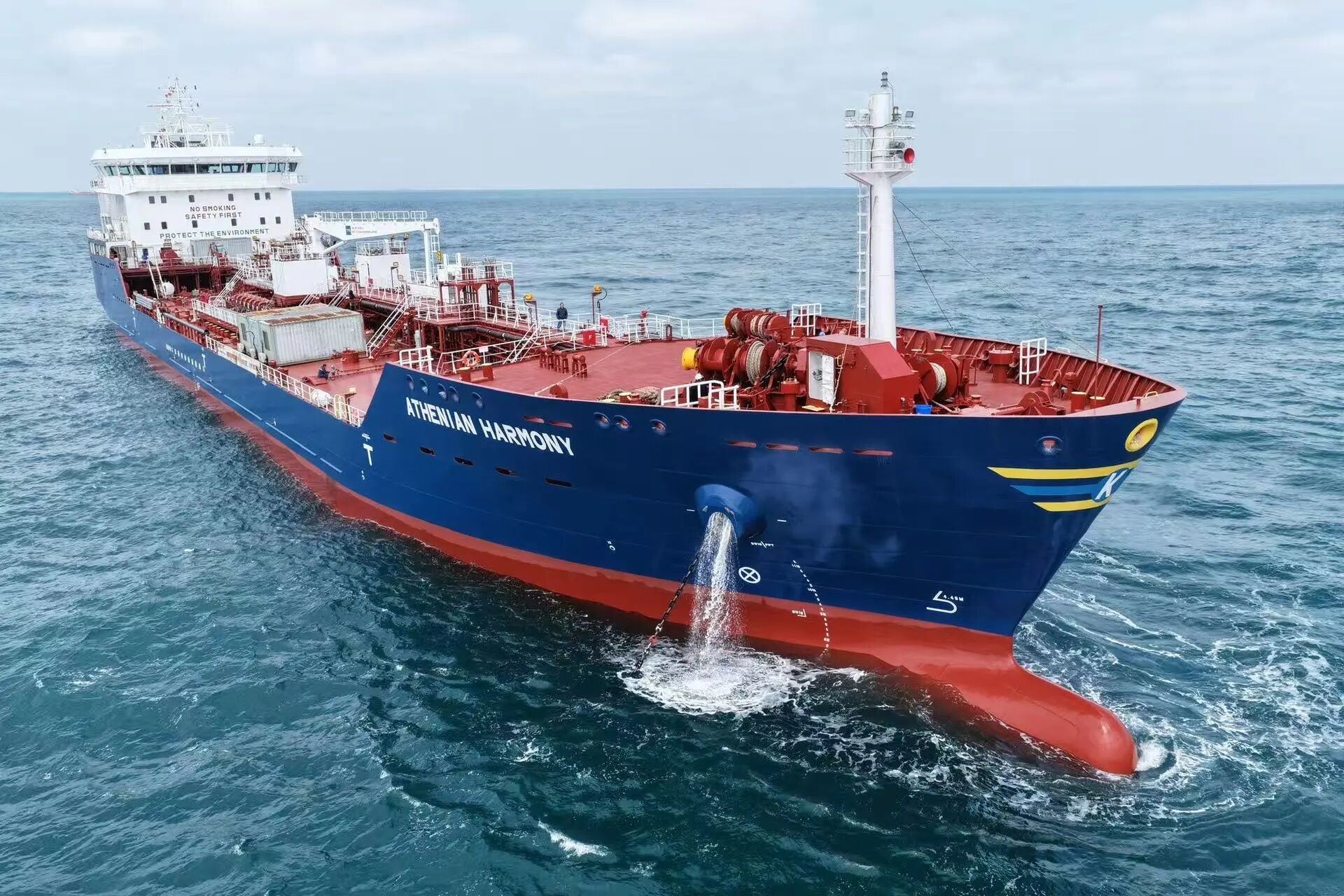由武昌造船为希腊Athenian Sea Carriers公司建造的18500载重吨成品油/化学品船5号船顺利完成海试任务,安全返回码头。