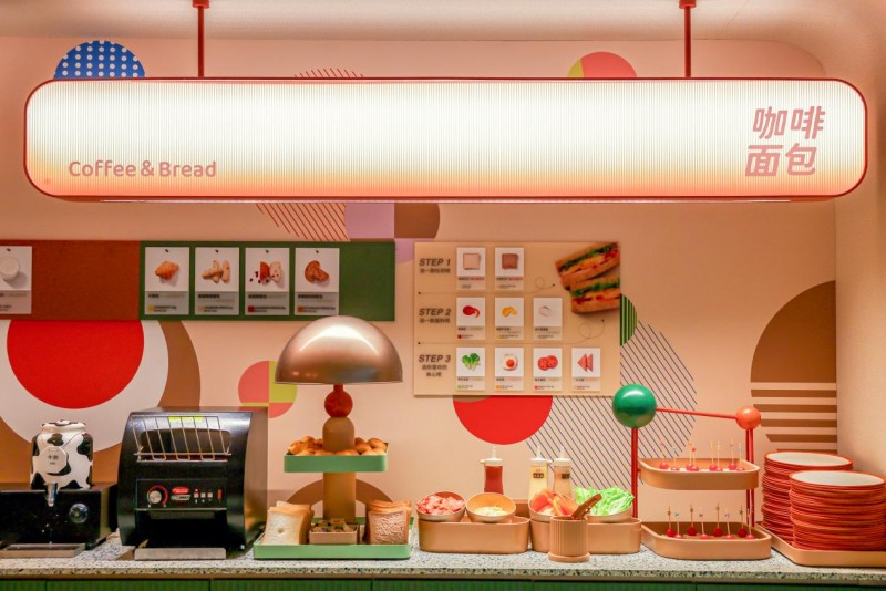 咖啡面包区:直达西式餐品,便捷高效又不失新鲜趣味。提供现磨咖啡、烘焙面包、三明治DIY等,友好适配快节奏的出行场景。