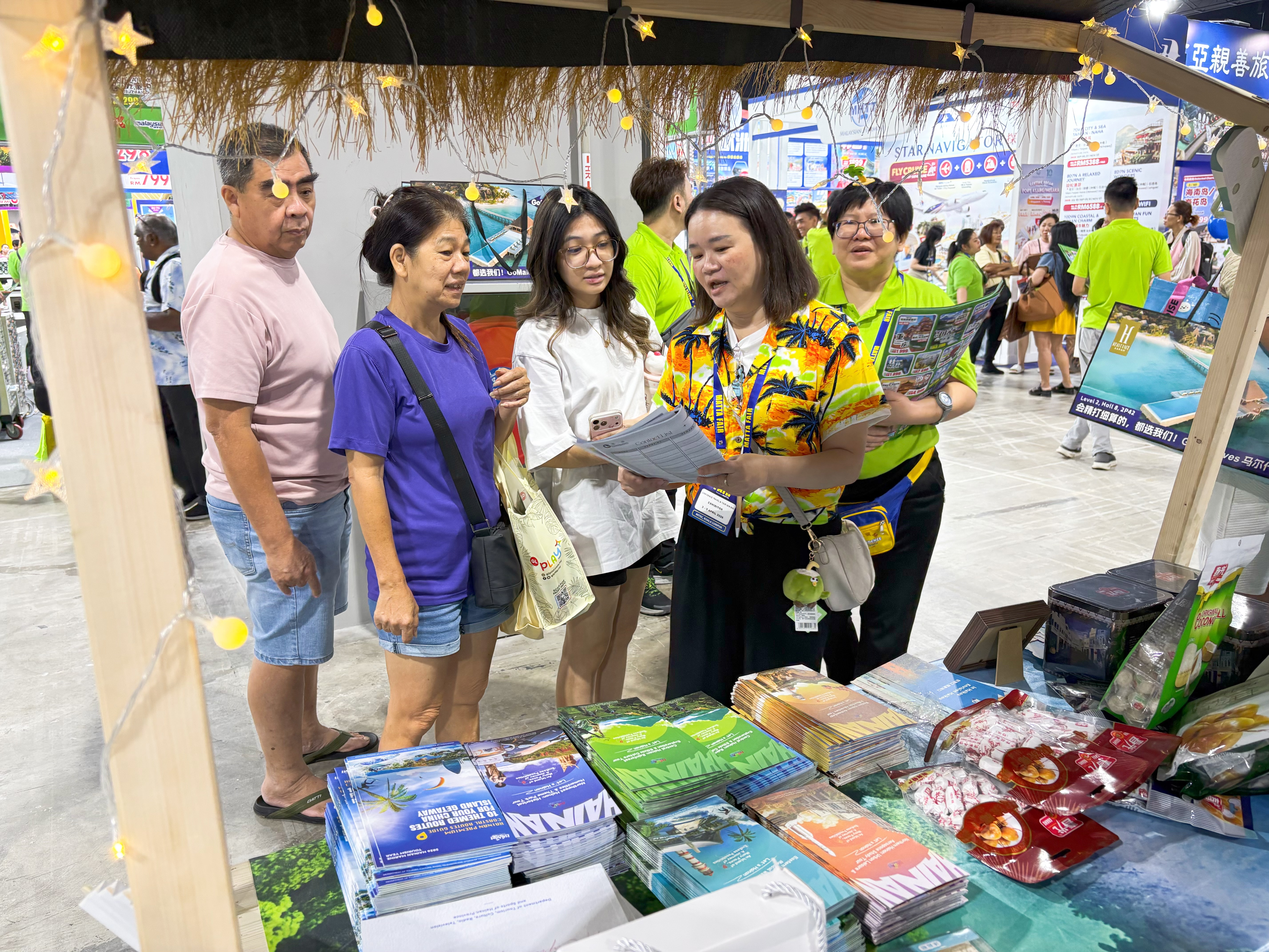 工作人员向马来西亚市民游客介绍海南旅游资源。