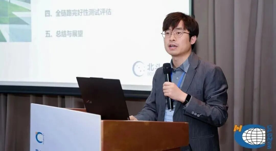 北斗星通副总裁黄磊博士在圆桌对话环节后作报告。他以“云芯一体,赋能智能PNT时代”为题,分析了行业发展趋势,指出当前PNT产业正处于从 GNSS 单一依赖向“云芯一体+多源融合”跃迁的关键期。他以“三轴交汇”作为模型,总结了智能PNT时代的时空需求,并重点介绍了北斗星通“智能位置数字底座”形成、定义、生态、架构、产品及操作系统框架等。他在报告中展示了北斗星通打造的“云芯一体”业务模式的优势、案例、应用场景等。