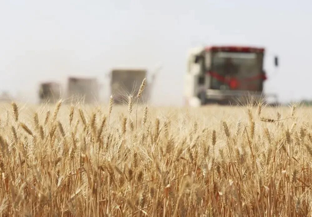 ▲ 2025年6月10日,河北省石家庄市栾城区柳林屯乡东牛村村民驾驶农机收割小麦。新华社发(梁子栋 摄)