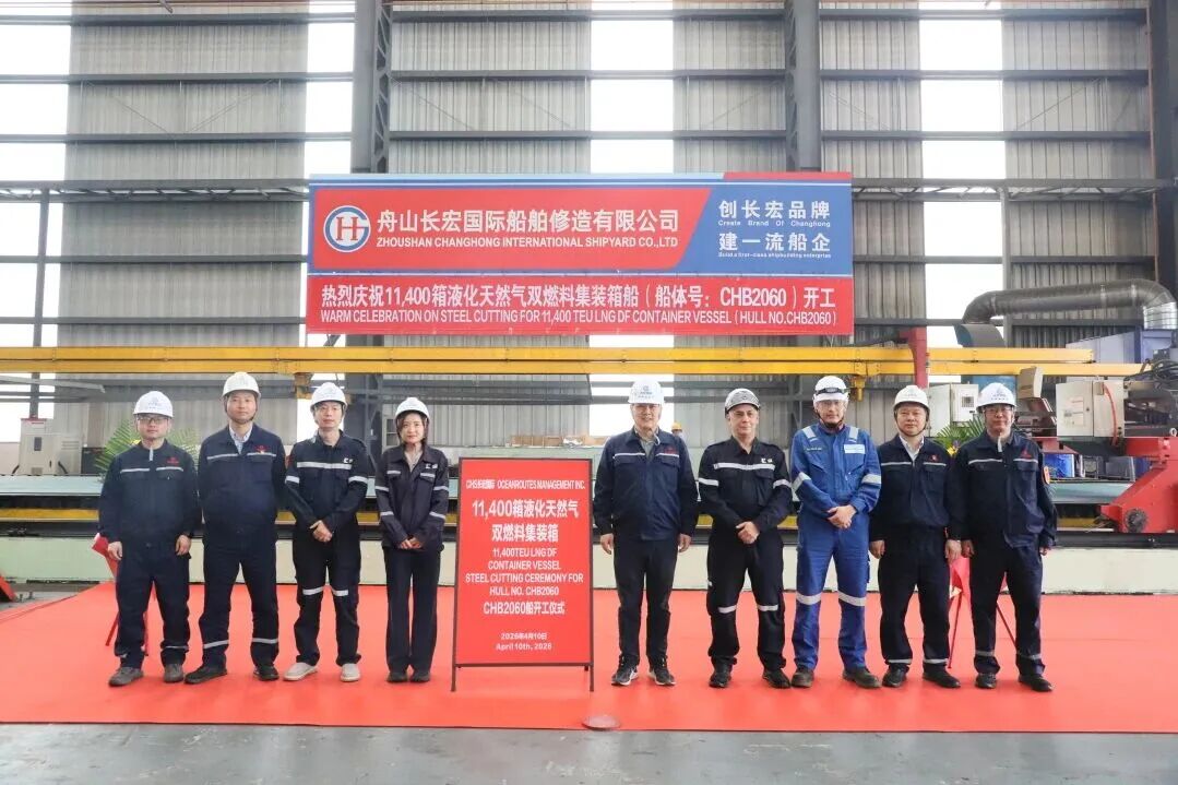 近日,舟山长宏国际为OCEANROUTES公司建造的11400TEU双燃料LNG动力集装箱船首制船和第二艘船点火开工。代表了长宏国际正式开启与新船东公司OCEANROUTES的项目合作,双方携手迈入大型双燃料集装箱船批量建造的新阶段。