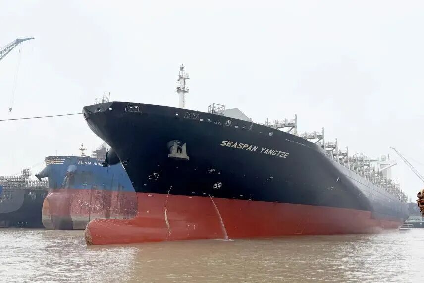 近日,上海中远海运重工10000TEU集装箱船甲醇双燃料改装项目首制船——“SEASPAN YANGTZE(扬子江)”轮正式进厂改造。