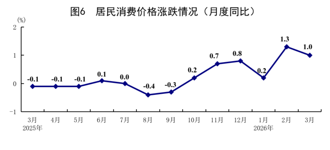 ◆ 一季度,全国居民消费价格(CPI)同比上涨0.9%,涨幅比上年四季度扩大0.4个百分点