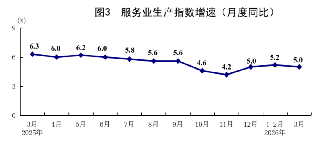 ◆ 一季度,服务业增加值同比增长5.2%
