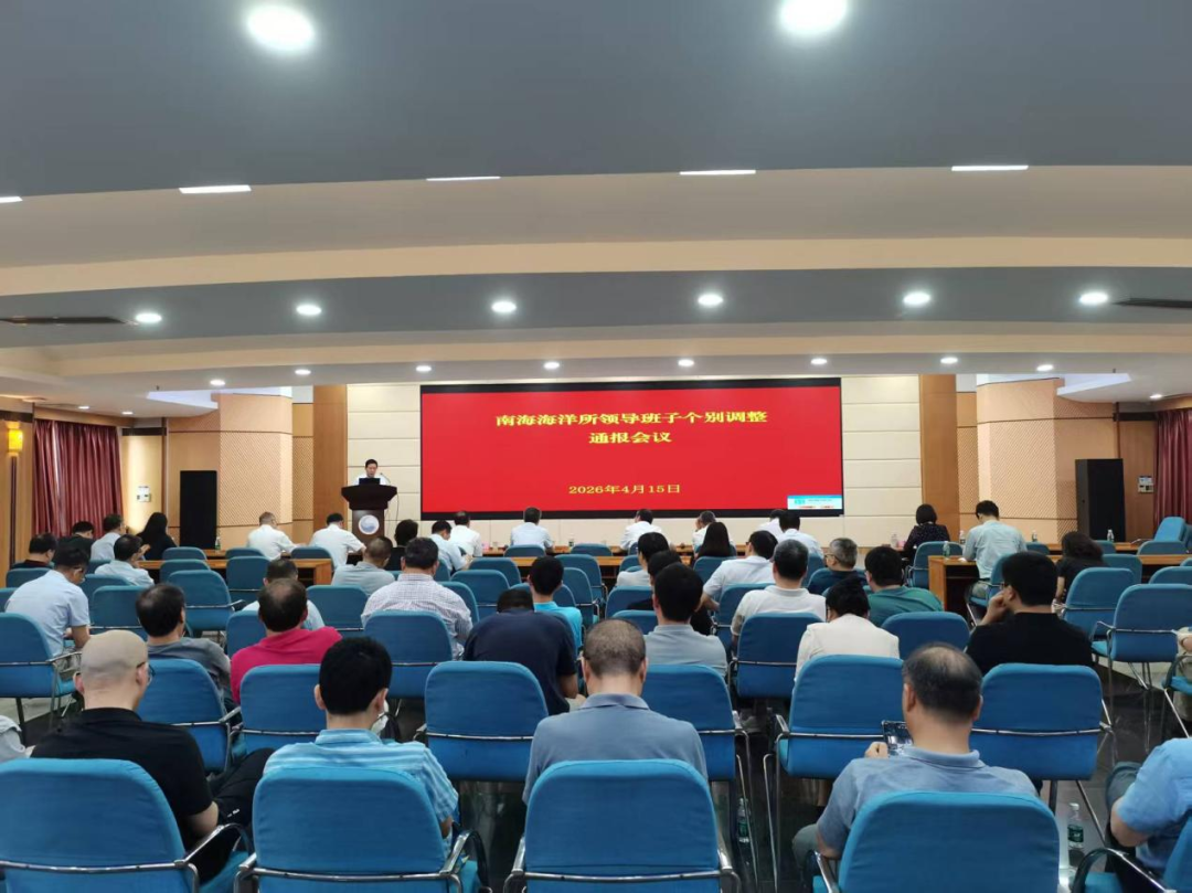 4月15日,南海海洋所领导班子个别调整通报会议在5号楼多功能厅召开。中国科学院广州分院分党组书记黄从利、人事人才处副处长林苑,南海海洋所领导班子成员、党委委员、纪委委员、管理及业务部门负责人、科研业务骨干等70余人参加会议。会议由黄从利主持。