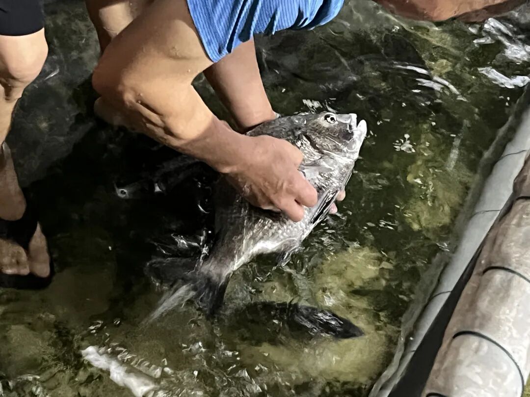 人工养殖的第一步,是找到野生亲鱼,但野生“黑牛”资源稀少成为难题。温凭和队友走遍龙海、漳浦、东山、诏安等多地,只要有渔民垂钓的地方,他们便主动上门打听、收集。此外,“黑牛”力气大、性子烈,容易将鱼钩深吞,鱼体易受伤,即便活着带回,也很难养活。团队先后尝试海钓、围网等多种方式,慢慢摸清它的“脾气”,减少损伤,从而提高存活率。