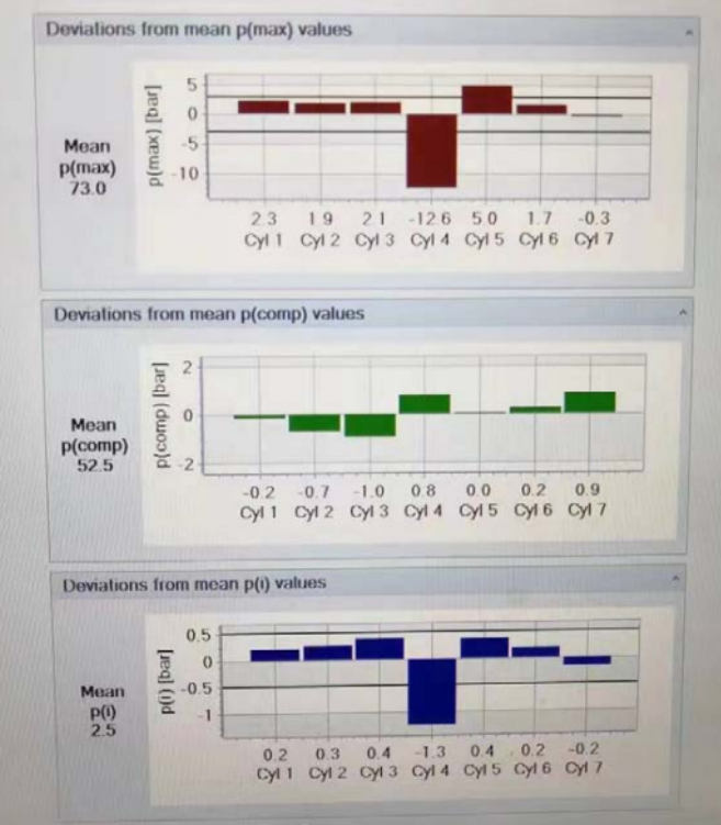 高转速运行时,各参数与其他缸的差距持续扩大,存在主机过载、部件损坏的潜在风险。