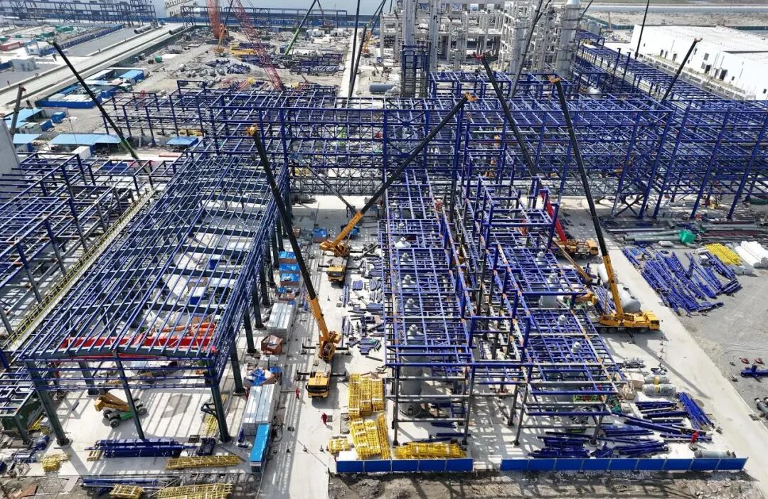 在华北,天津国储库251名建设者围绕储罐安装、焊接等核心工序展开“大会战”;山东裕龙石化1#EVA现场近300人分区协同作战,忙而不乱,秩序井然。