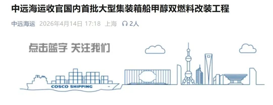 中远海运也已进入这一阶段。2024年,其正式签约推进4艘大型集装箱船甲醇双燃料改装项目,涉及2艘2万TEU级和2艘13,800TEU级船舶,被称为全球首个同时涵盖MAN主机和瓦锡兰辅机的大型集装箱船双燃料升级项目。到2026年4月,中远海运方面已披露相关大型项目完成收官,并形成了甲醇双燃料船舶领域“修理+改装+加注”的全链条能力闭环。这个案例说明,头部中国船东与修船体系也已不再停留在概念层面,而是开始把大型在役船双燃料改装真正做成工程化能力。