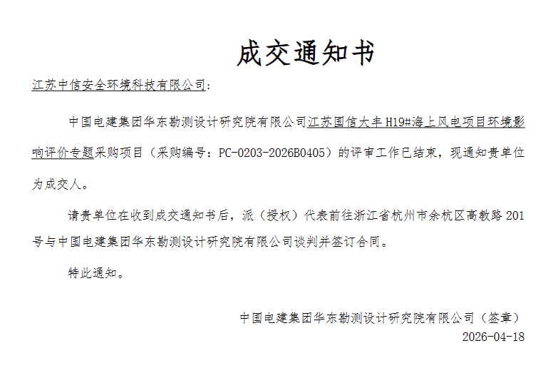 成交结果公示!江苏国信大丰H19#海上风电项目