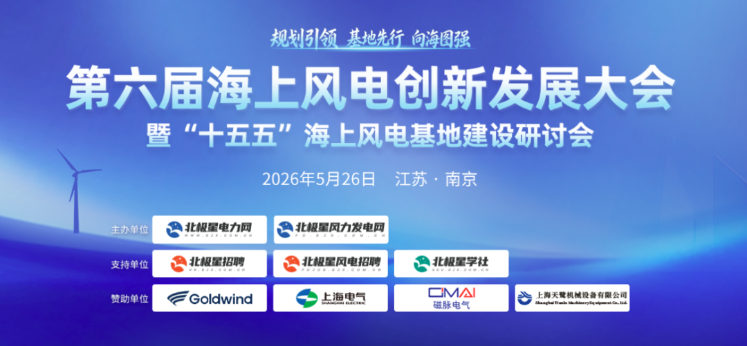 为深入贯彻落实“十五五”规划目标,凝聚行业共识,共商海上风电高质量建设路径,北极星电力网、北极星风力发电网拟于2026年5月26日在江苏南京召开第六届海上风电创新发展大会暨“十五五”海上风电基地建设研讨会,将邀请国家及地方政府主管部门、智库专家、规划与建设单位、产业链龙头企业、科研院校及金融机构代表,共绘海上风电高质量发展蓝图,解锁深远海、基地化、供应链、AI 技术等系列机遇和挑战,为产业跨越式发展注入强劲动能。