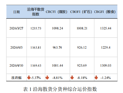 上海国际航运研究中心航运发展研究所发布《中国沿海干散货运输市场双周报(2026.03.28-2026.04.10)》。