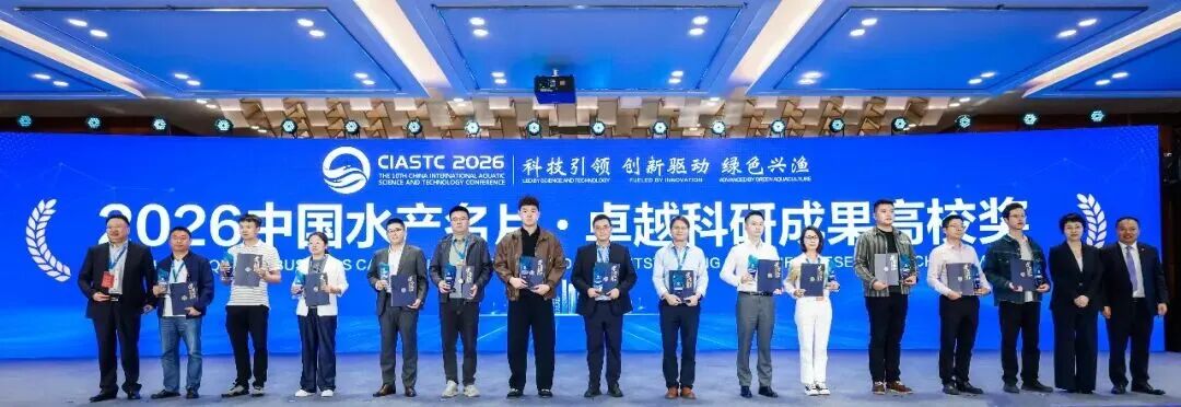 大会还隆重颁发“2026中国水产名片”十大科技创新奖、十大杰出成果奖、十大标杆品牌奖、十大卓越贡献奖、卓越科研成果高校奖五大重磅奖项,表彰在水产科技研发、产业实践、绿色发展、乡村振兴等方面作出突出贡献的企业、高校。通过树立标杆,激发全行业创新创造活力,引导广大水产从业者坚守质量底线、深耕科技创新、践行绿色发展理念,推动我国水产行业实现新的更大突破。