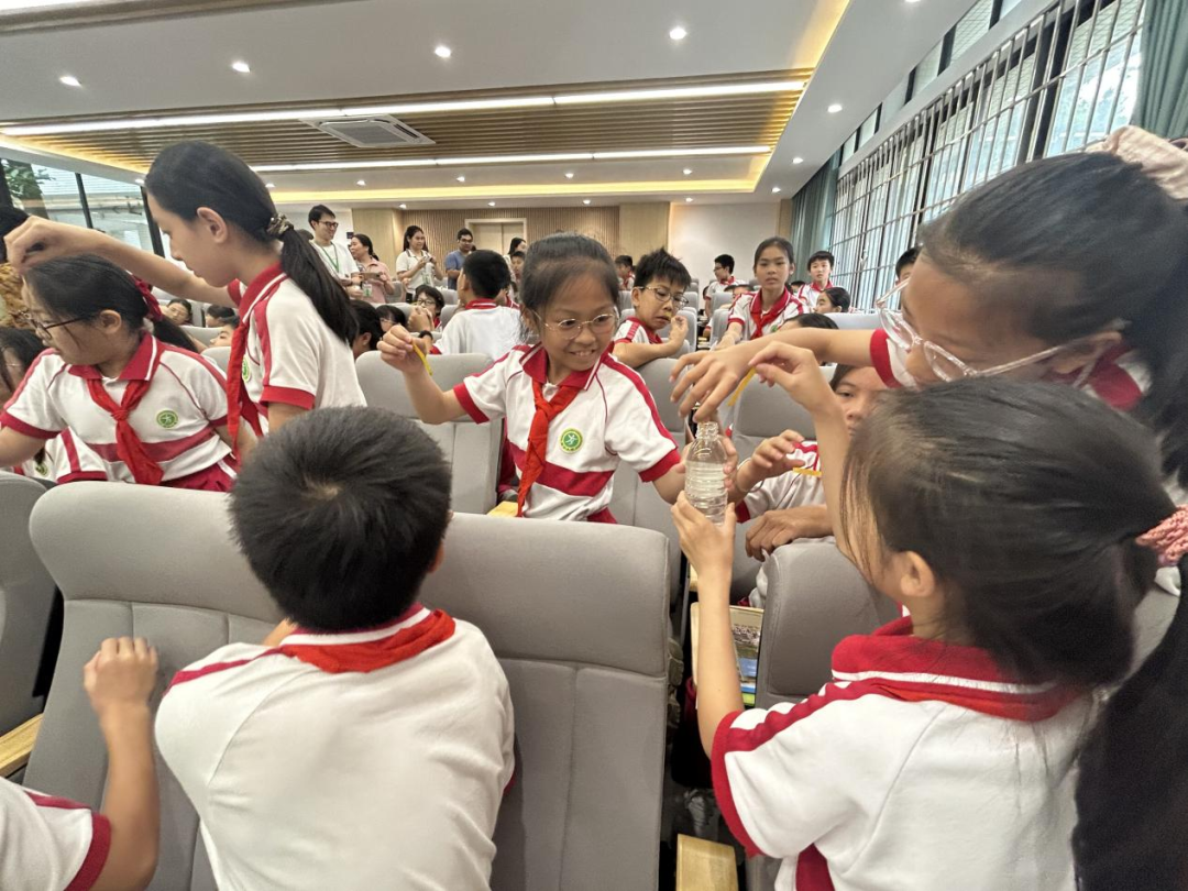 在同学们观看了监测井水位测量和取样的过程视频后,专家还带来了取自监测井的真实水样,让同学们近距离观察、直观感受,把枯燥的地质知识变成有趣的科学故事,让孩子们听得入迷、记得牢固。