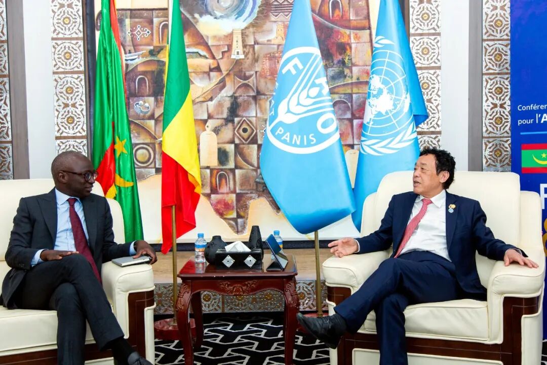屈总干事在部长级会议前会见毛里塔尼亚总理艾贾伊。艾贾伊总理热烈欢迎屈总干事时隔两年再度访毛,衷心感谢粮农组织推动区域成员国选择毛主办此次会议。他强调,当前全球地缘政治冲突、气候变化危机问题突出,非洲农业发展面临空前压力,毛坚定支持粮农组织、非洲联盟及国际社会有关工作,为实现区域粮食安全作出贡献。