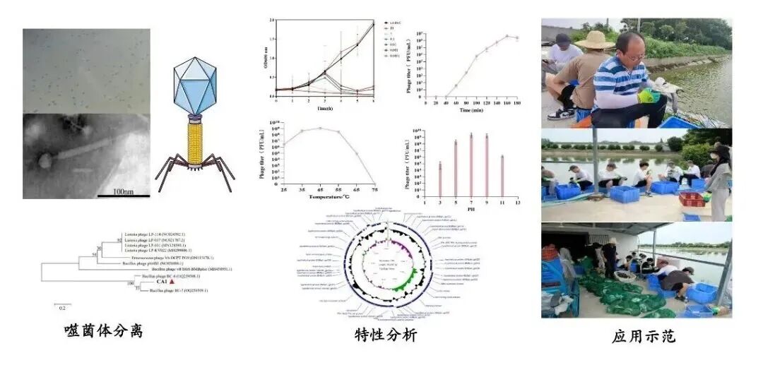 针对中华鳖“摇头病”易反复发病,且缺乏绿色高效疗法的技术难题,该团队筛选获得1株能杀死蜡样芽孢杆菌的新型裂解性噬菌体,按最低感染复数MOI=0.1施用该噬菌体,保护率可达54%,开创中华鳖细菌性疾病的靶向治疗新途径,为用药减量行动提供了全新解决方案。
