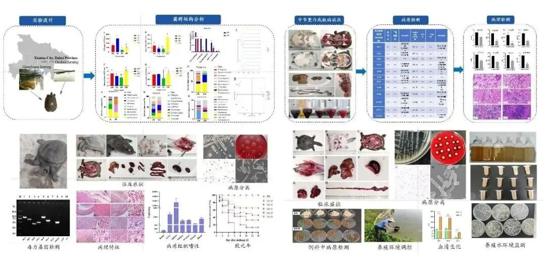 为了确定中华鳖养殖中的主要疾病,该团队从湖北、安徽、湖南、江西等中华鳖主养区域采集患病中华鳖进行流行病学调查,共采集患病中华鳖230余份,共分离获得细菌性病原菌300余株,系统阐明我国中华鳖病害“病原谱”,明确了维氏气单胞菌、嗜水气单胞菌、蜡样芽孢杆菌为流行最广泛的病原。