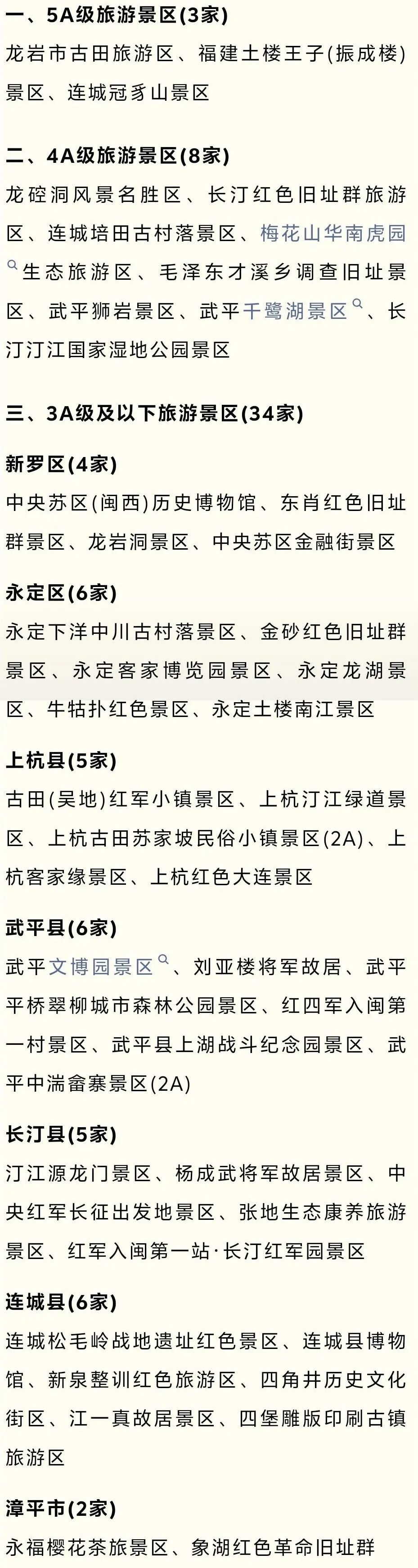 可享龙岩45家国有A级旅游景区