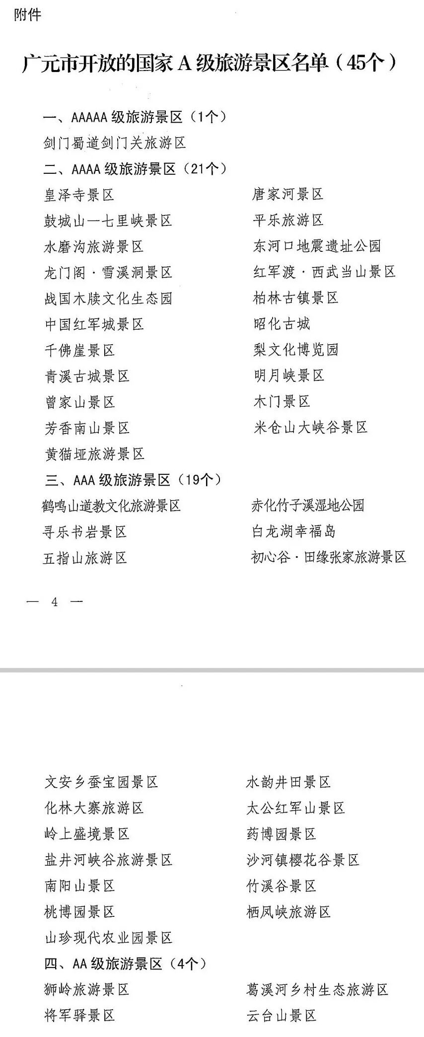 广元市A级旅游景区