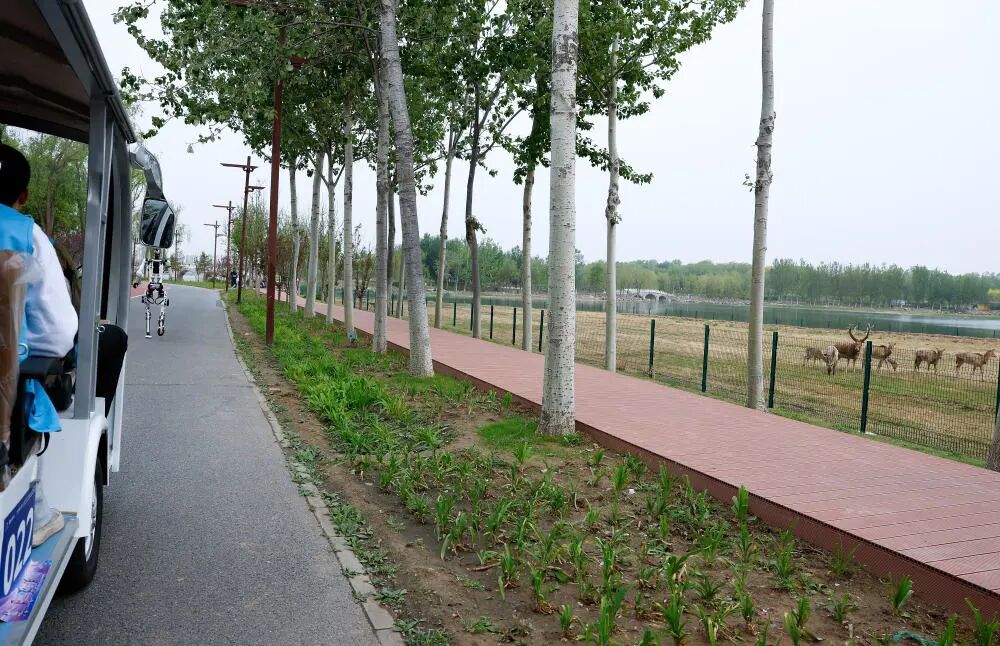 此次比赛中,有一幕令人印象深刻:机器人跑马赛道正好经过南海子公园麋鹿苑,麋鹿悠闲觅食、抬头张望,机器人从一旁奔跑而过,观众则为人类跑者和机器人选手一同加油喝彩。那一刻,人、机、自然和谐共生的画面悄然定格。