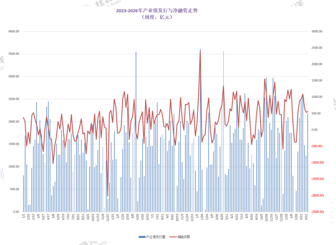 本周信用债共发行3,053.75亿元,比上周1,773.15亿元环比下降72.22%,净融资规模762.42亿元,比上周568.20亿元环比增加194.22亿元。其中城投债本周发行量866.85亿元,比上周526.65亿元环比增长64.60%,净融资规模为208.54亿元,较上周增长171.39亿元;产业债本周发行量2,186.90亿元,比上周1,246.50亿元环比增加75.44%,净融资规模553.88亿元,环比增加22.83亿元。从发行规模主体性质来看,国有企业本周发行量2,875.10亿元,比上周1,655.15亿元增长73.71%,净融资规模687.89亿元,较上周562.21亿元环比增长125.68亿元;民营企业本周发行量178.65亿元,较上周118.00亿元环比增加51.40%,净融资规模74.53亿元,较上周5.99亿元环比增加68.54亿元。